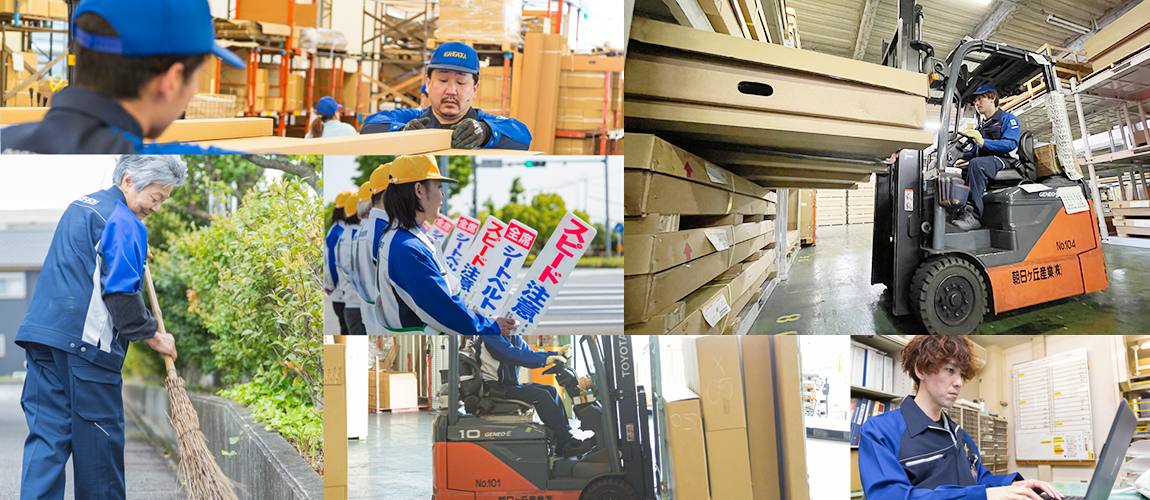 補給部品とは、アフターマーケット向けの自動車補修用部品のことで、弊社では、ドア、バックドア、ルーフなどの大物外装部品の保管と入出荷業務、更には、トヨタ自動車様の部品センター、トヨタ・モビリティー・パーツ様の一部支社への輸送を担い、正しい部品を迅速・安全・確実にお届けしています。